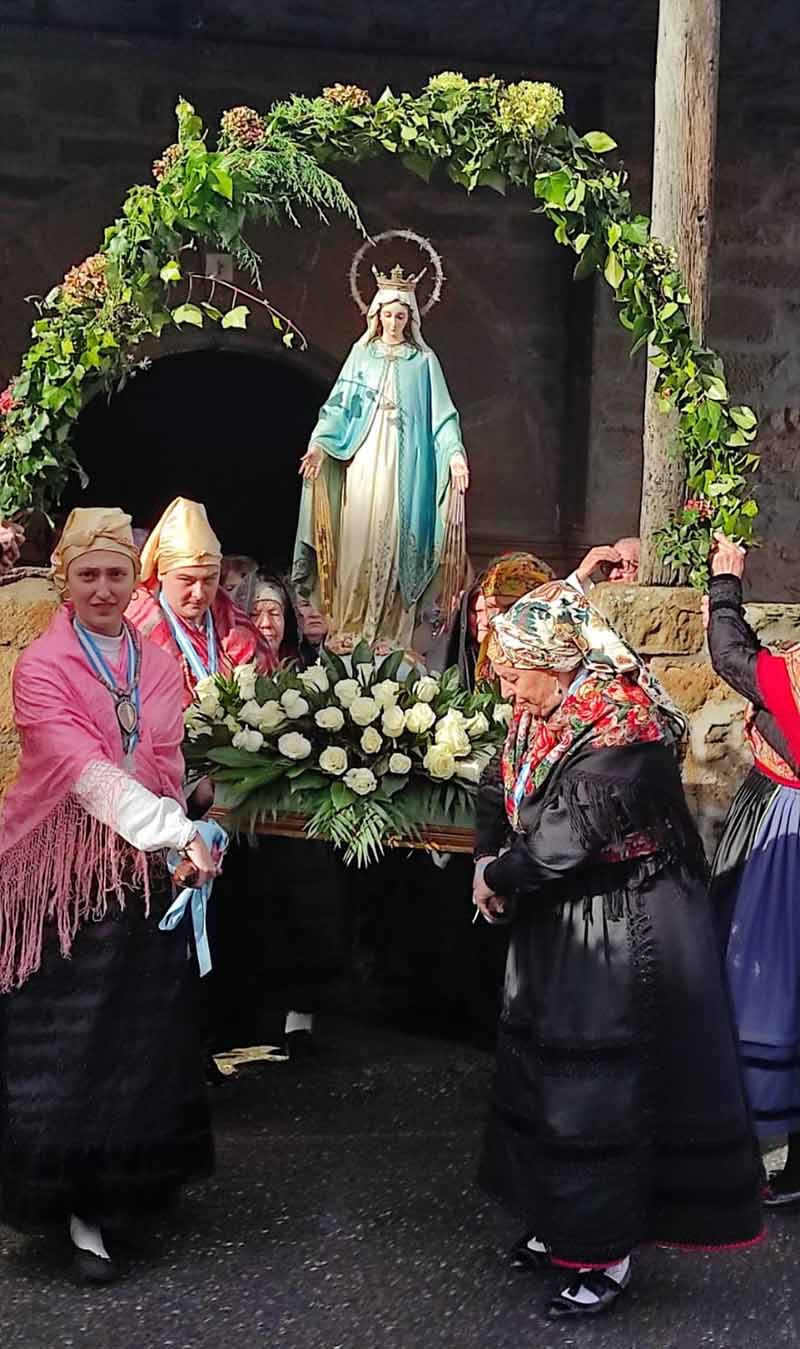 Según cuentan los mayores, la imagen de la Virgen llegó al pueblo gracias a cuatro mujeres que, con devoción, la trajeron desde la estación de tren de Bembibre montadas en una burra. La imagen fue donada por la Sra. María benefactora del pueblo. El estandarte que acompañaba a la imagen fue financiado mediante representaciones teatrales, organizadas por las vecinas con la colaboración de Doña Pura, la maestra del pueblo en aquel entonces.