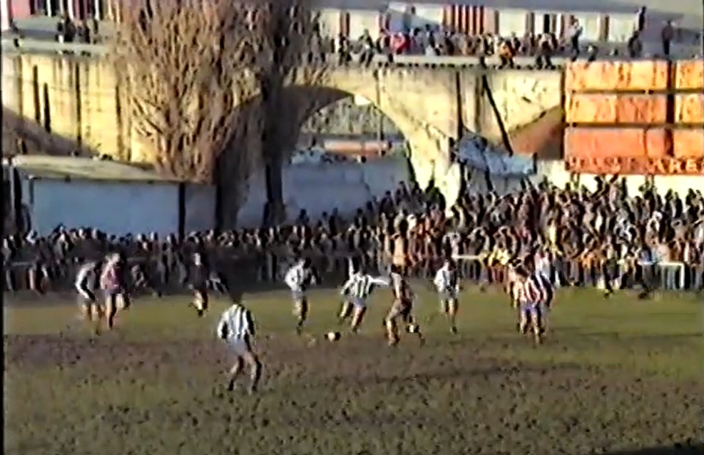 Se puede apreciar también cómo ha evolucionado el fútbol. Aquí vemos un juego muy intenso, más físico y directo. Llama la atención la nobleza y las escasas protestas de los jugadores, en situaciones que hoy en día se reclamarían insistentemente como falta o incluso penalti.