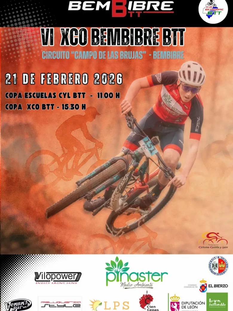 Bembibre celebrará el sábado 21 de febrero de 2026 la VI XCO Bembibre BTT, una cita de cross country olímpico (XCO) que tendrá como escenario el circuito Campo de las Brujas de la localidad. La prueba está organizada por el C.D. Bembibre BTT, que ya ha presentado el cartel oficial de esta sexta edición.