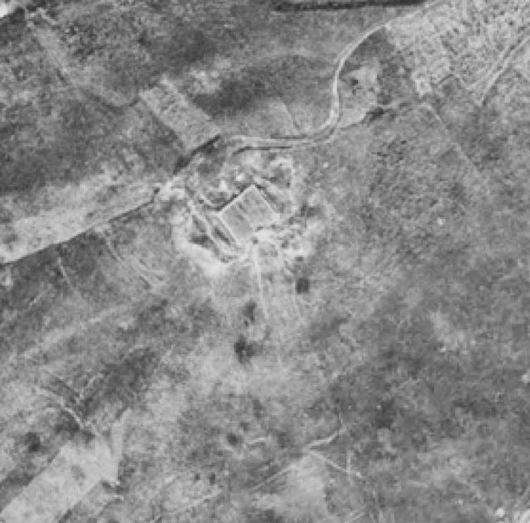 La Corona en 1956. Se observan zonas sombreadas en corculos que se corresponden con el sistema defensivo