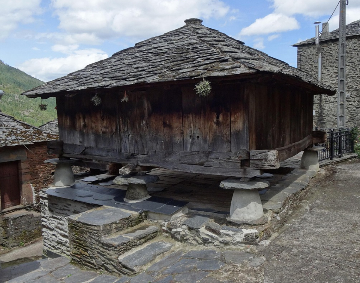Los hórreos son arquitecturas populares que se diseñaron para guardar las cosechas y alimentos y ponerlas a salvo de los roedores y alimañas. Su principal seña de identidad es que se levantan sobre pilotes o pies derechos que los aíslan del suelo para favorecer su ventilación interna y evitar el acceso de los animales.