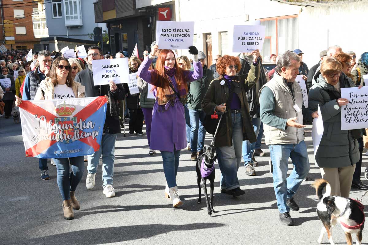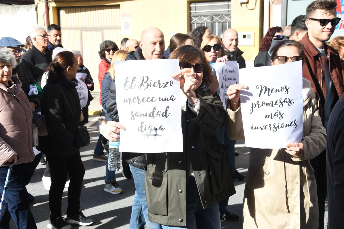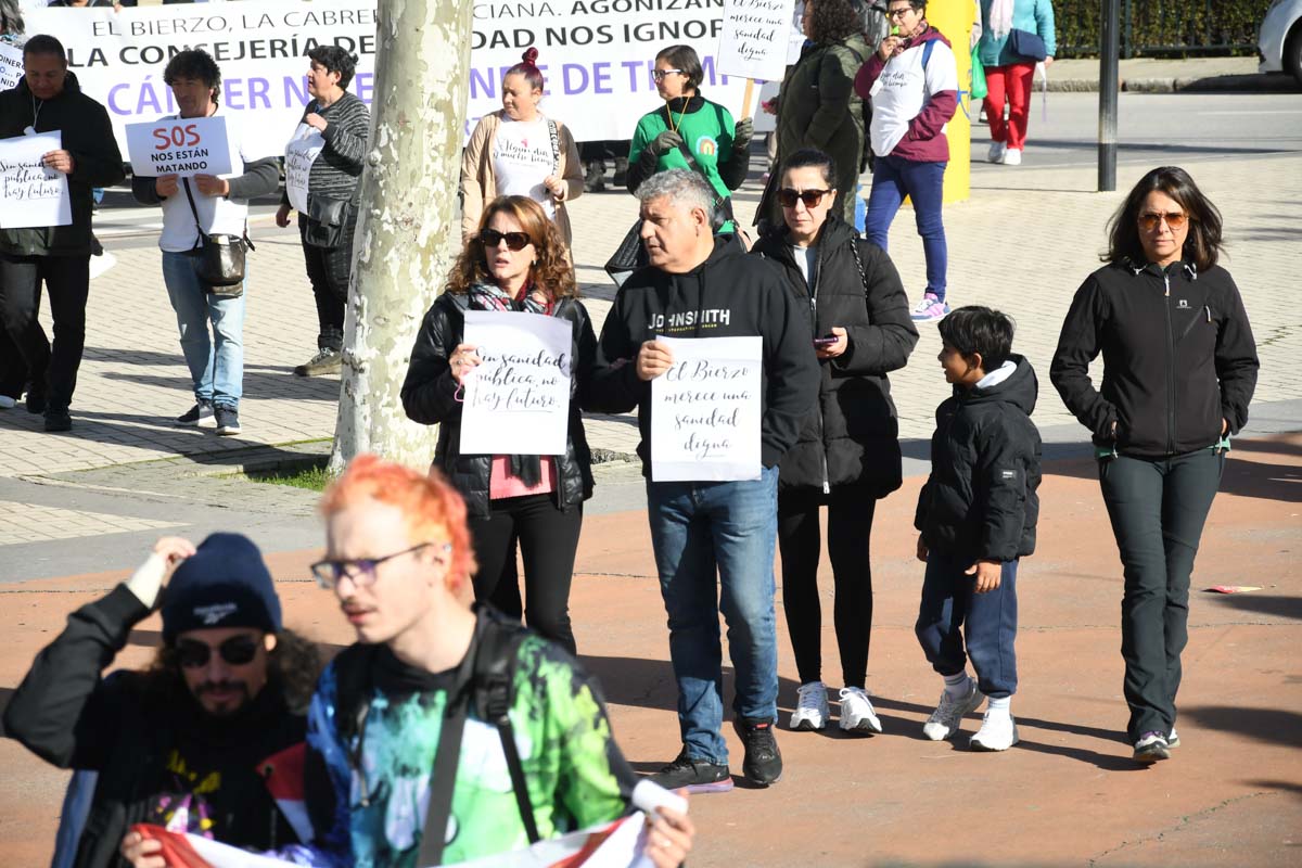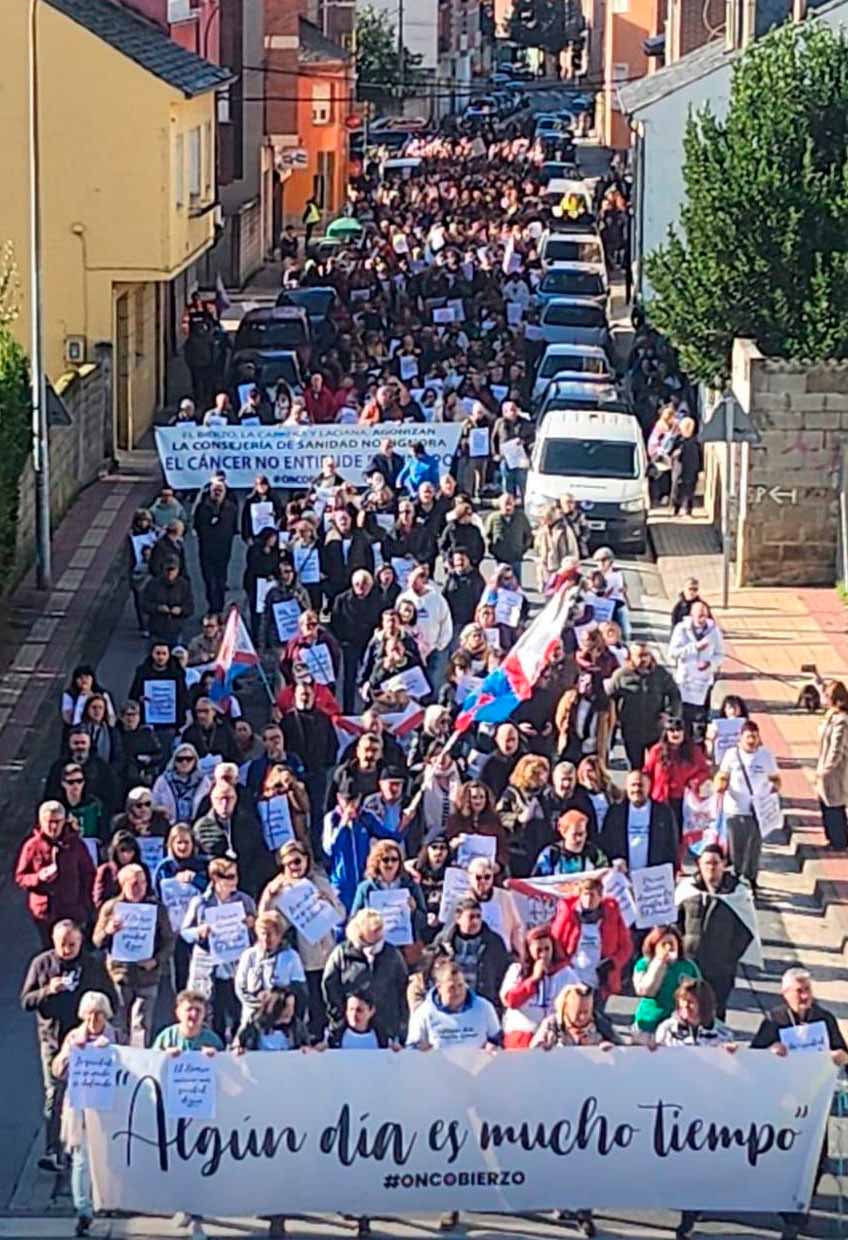 Más de 2.000 personas (entre 2.200 y 2.500, según las fuentes consultadas) se concentraron este domingo en Bembibre para exigir mejoras en la sanidad pública. Convocada por Oncobierzo y enmarcada en una jornada de protestas a nivel estatal, la marcha puso el foco en el Hospital del Bierzo por la falta de medios técnicos y de profesionales en varias especialidades, así como en la atención primaria.