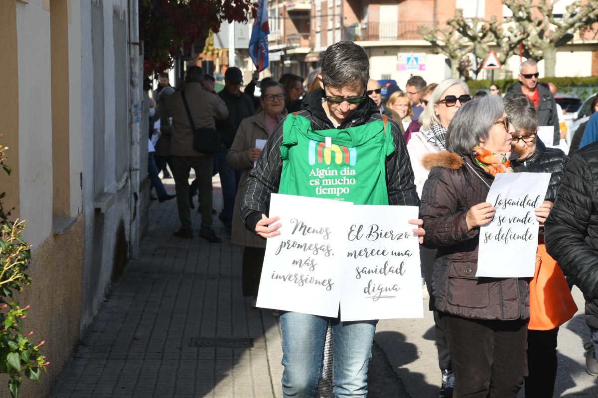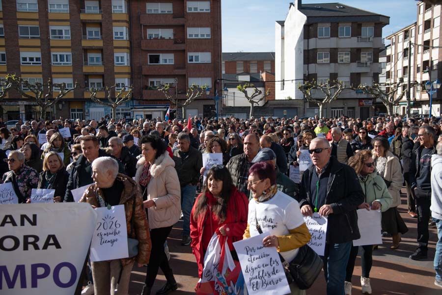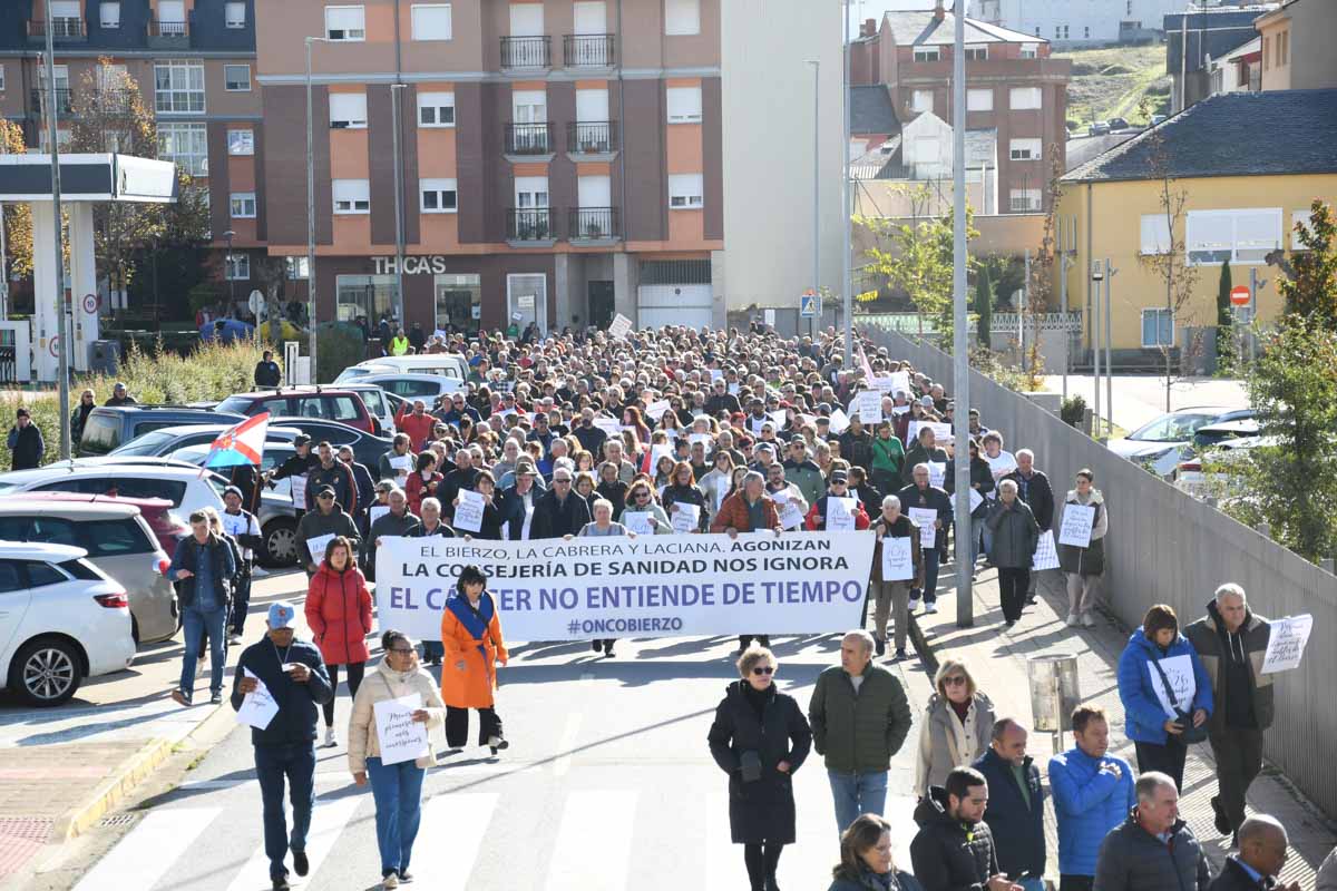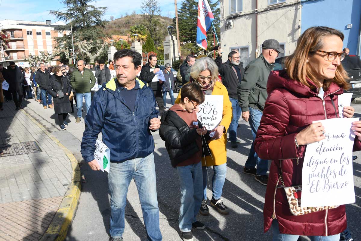 Más de 2.000 personas (entre 2.200 y 2.500, según las fuentes consultadas) se concentraron este domingo en Bembibre para exigir mejoras en la sanidad pública. Convocada por Oncobierzo y enmarcada en una jornada de protestas a nivel estatal, la marcha puso el foco en el Hospital del Bierzo por la falta de medios técnicos y de profesionales en varias especialidades, así como en la atención primaria.