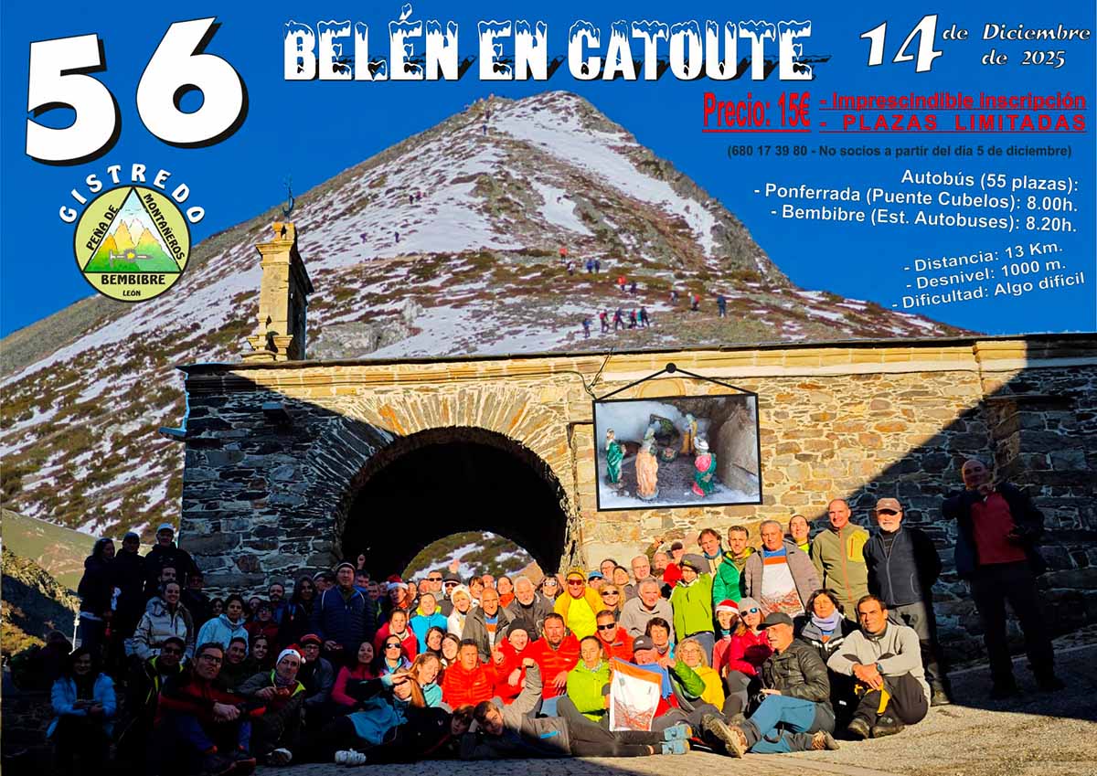 Como manda la tradición, la Peña de Montañeros Gistredo volverá a subir el Belén al Pico Catoute, el más alto del Bierzo, ya en su quincuagésima sexta edición, con la que dará comienzo a la Navidad en la comarca del Bierzo.