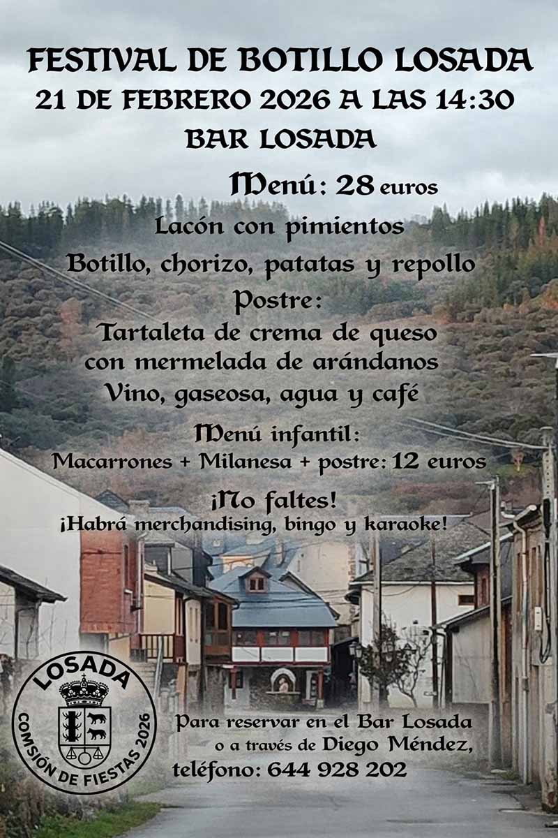 La localidad de Losada se prepara para la cita gastronómica más esperada de su calendario festivo. El próximo sábado 21 de febrero tendrá lugar una nueva edición del Festival del Botillo. Una cita ya consolidada entre los numerosos festivales relacionados con el embutido rey que se celebran en la comarca.
