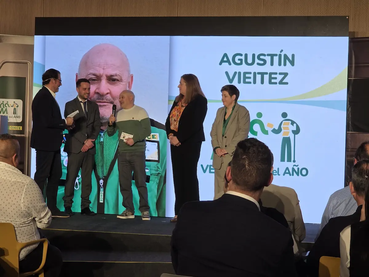 El bembibrense Agustín Viéitez ha sido distinguido con el reconocimiento de Vendedor del Año 2025 de la ONCE en Castilla y León por la provincia de León, dentro del acto de la organización para pone en valor la labor de sus agentes vendedores en la comunidad autónoma