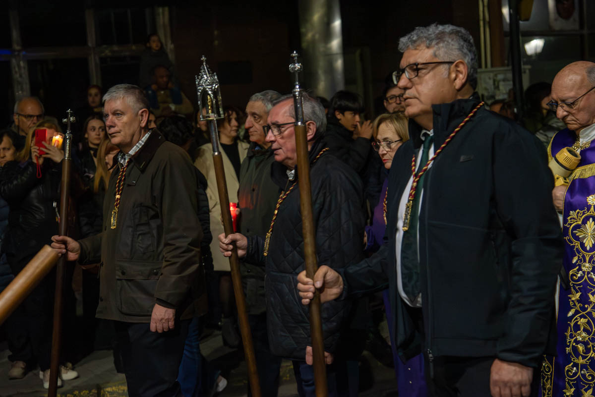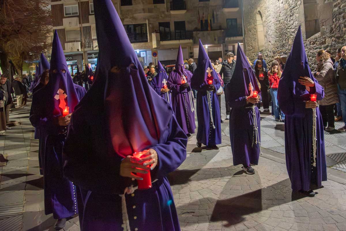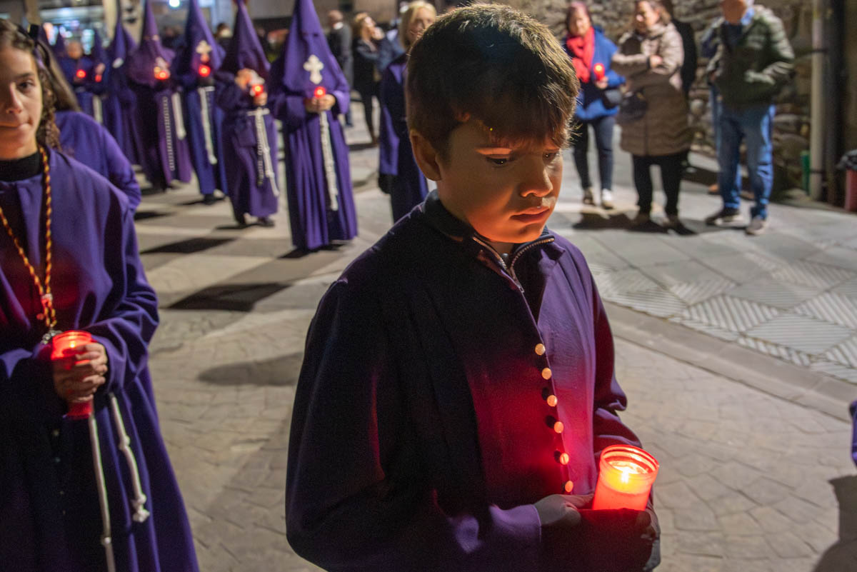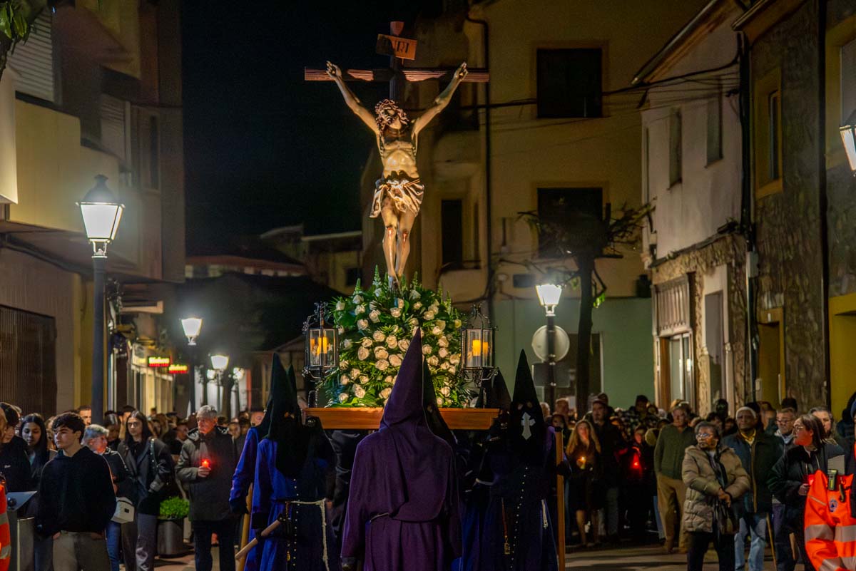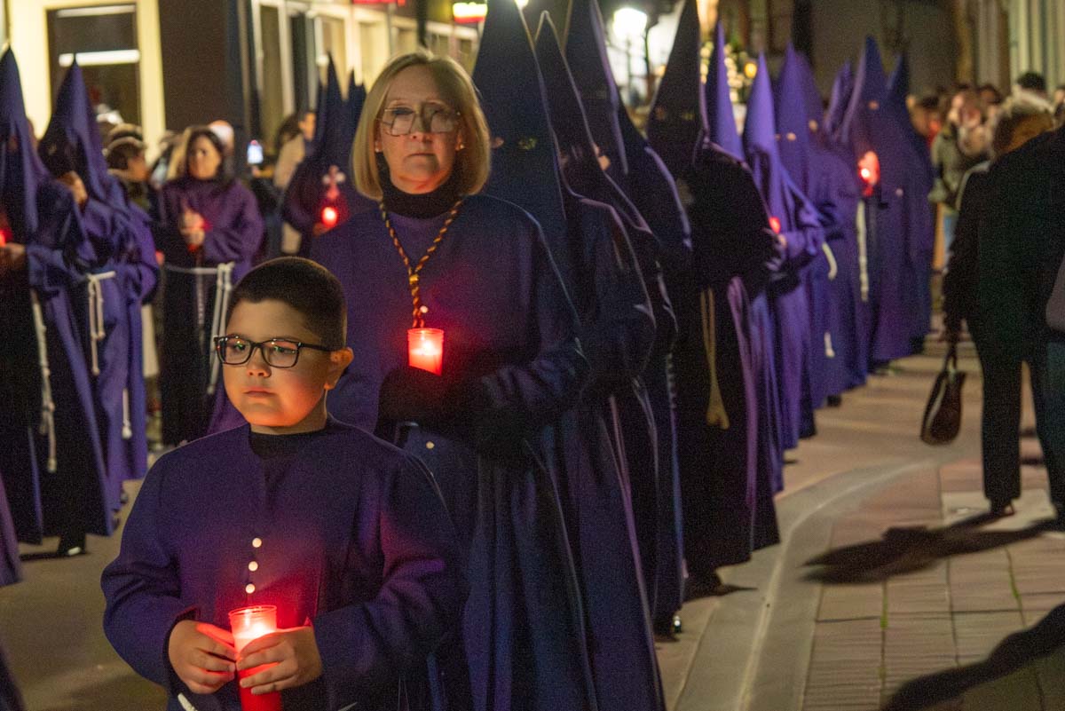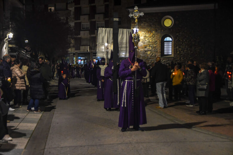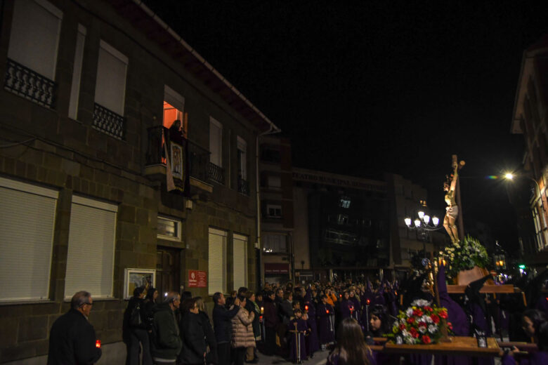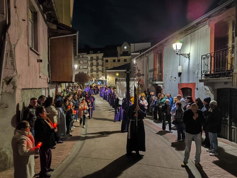 La comitiva partió de la iglesia de San Pedro para recorrer varias de las principales calles del casco urbano, con paso por la avenida del Bierzo, calle Vatemar, Eloy Reigada, calle Castilla y Plaza Mayor, en un itinerario habitual en la Semana Santa de Bembibre. A lo largo del trayecto, el silencio de los asistentes volvió a convertirse en el principal lenguaje de la noche, reforzando el carácter sobrio y meditativo de una procesión que conserva intacta su fuerza simbólica.