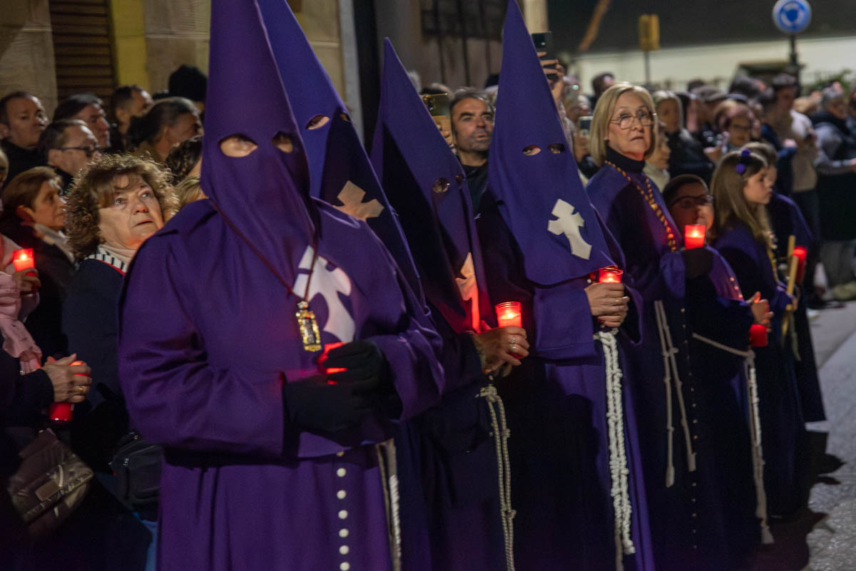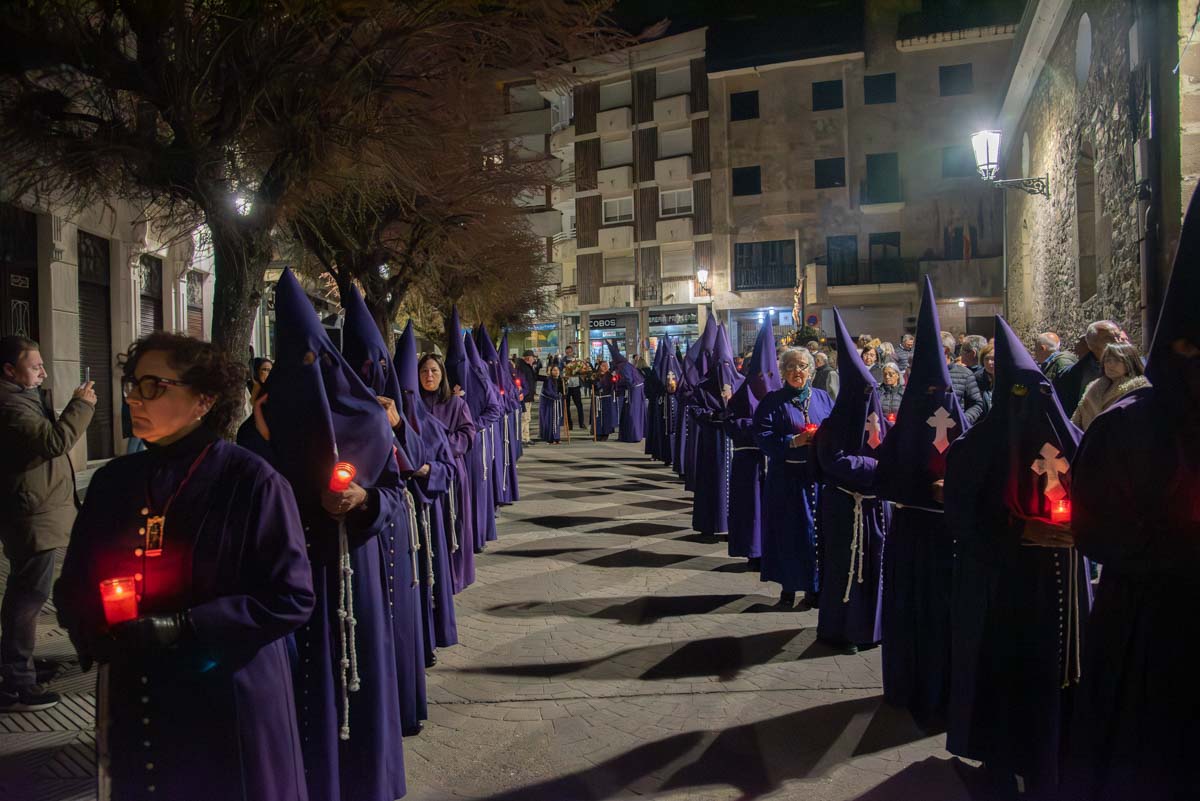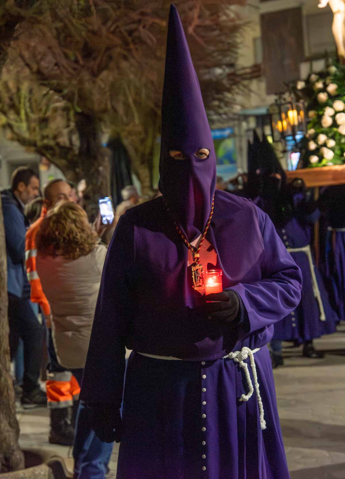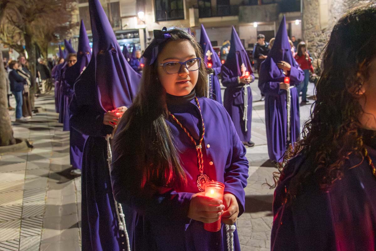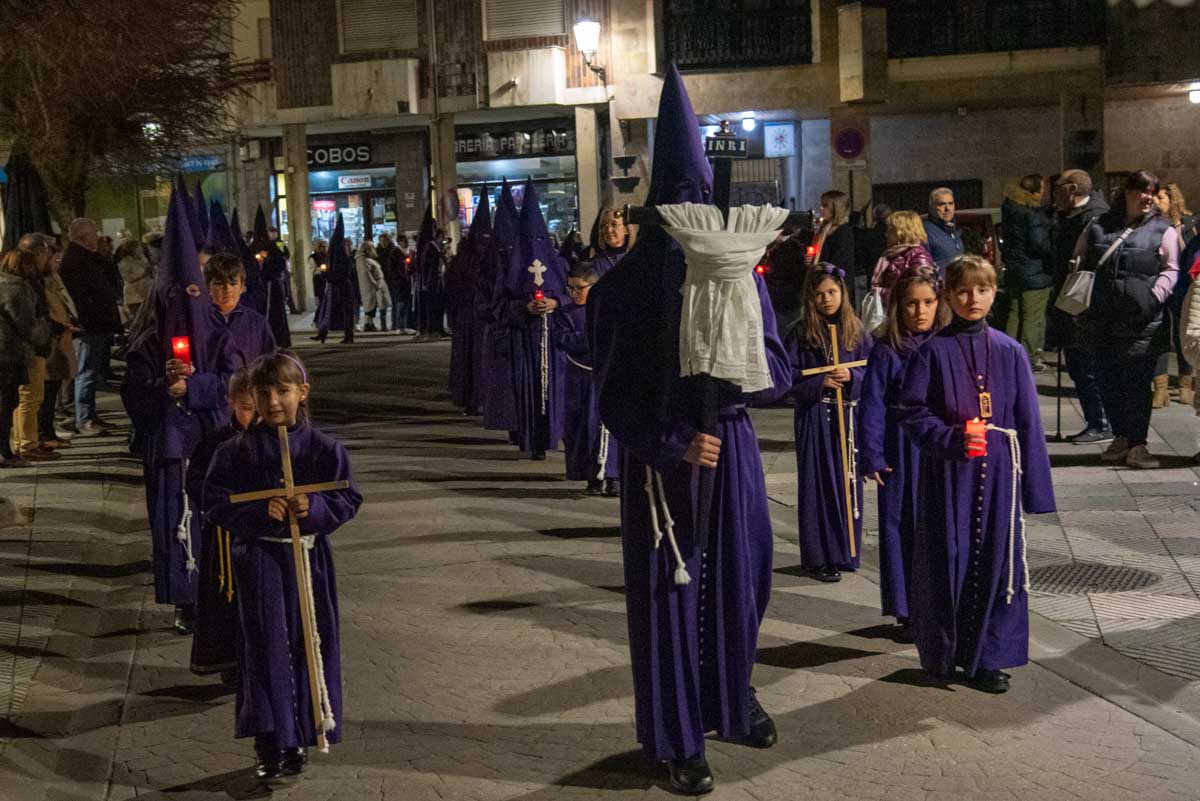 La comitiva partió de la iglesia de San Pedro para recorrer varias de las principales calles del casco urbano, con paso por la avenida del Bierzo, calle Vatemar, Eloy Reigada, calle Castilla y Plaza Mayor, en un itinerario habitual en la Semana Santa de Bembibre. A lo largo del trayecto, el silencio de los asistentes volvió a convertirse en el principal lenguaje de la noche, reforzando el carácter sobrio y meditativo de una procesión que conserva intacta su fuerza simbólica.