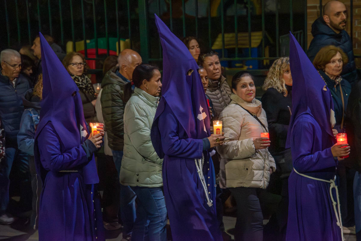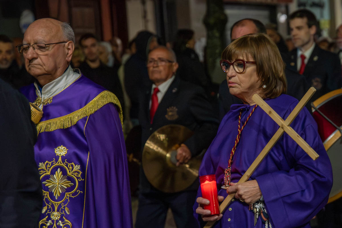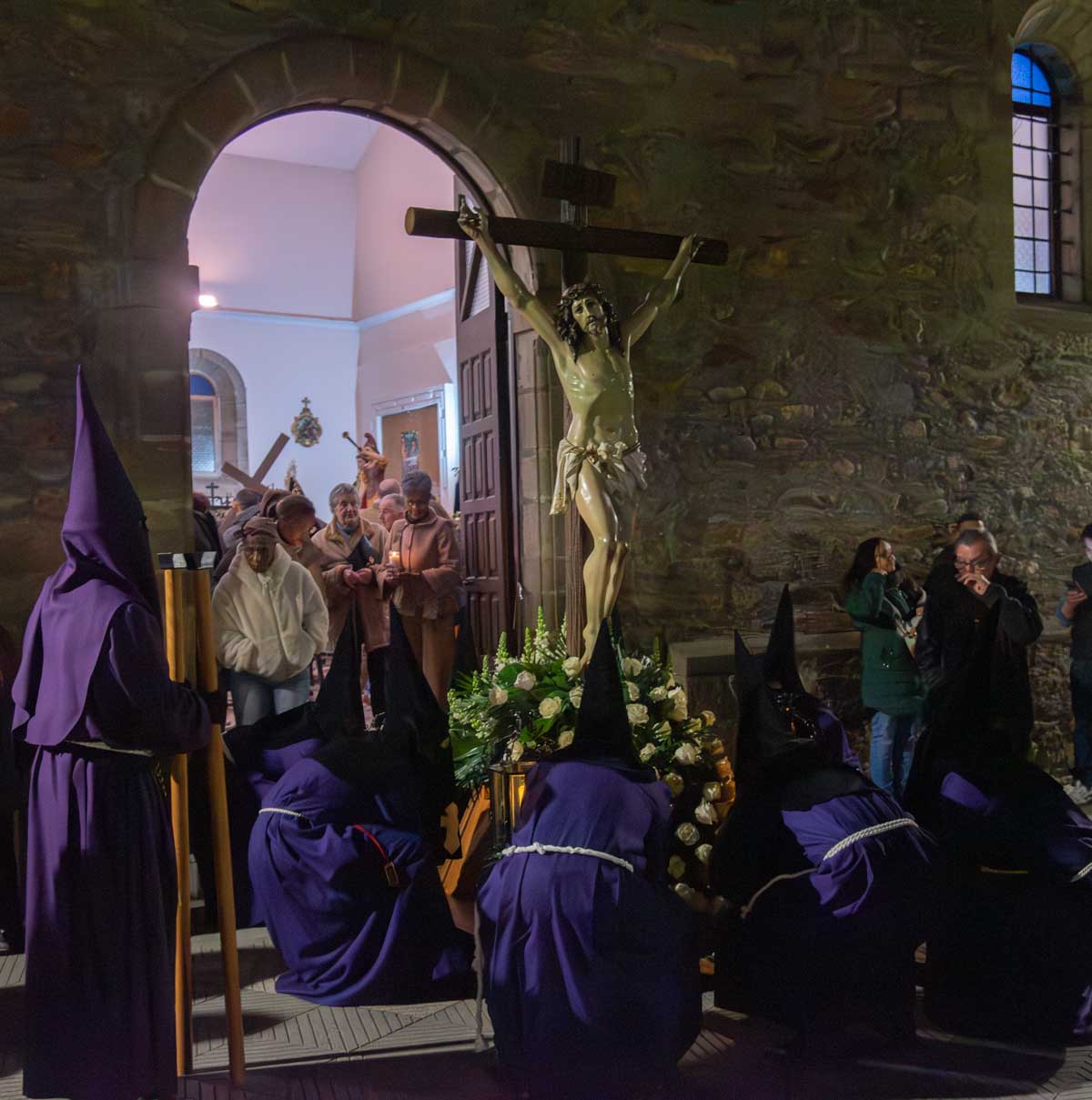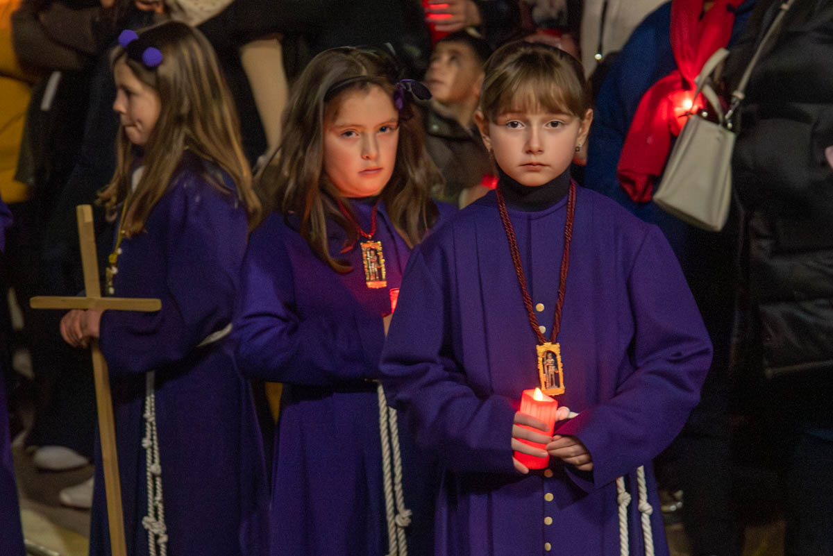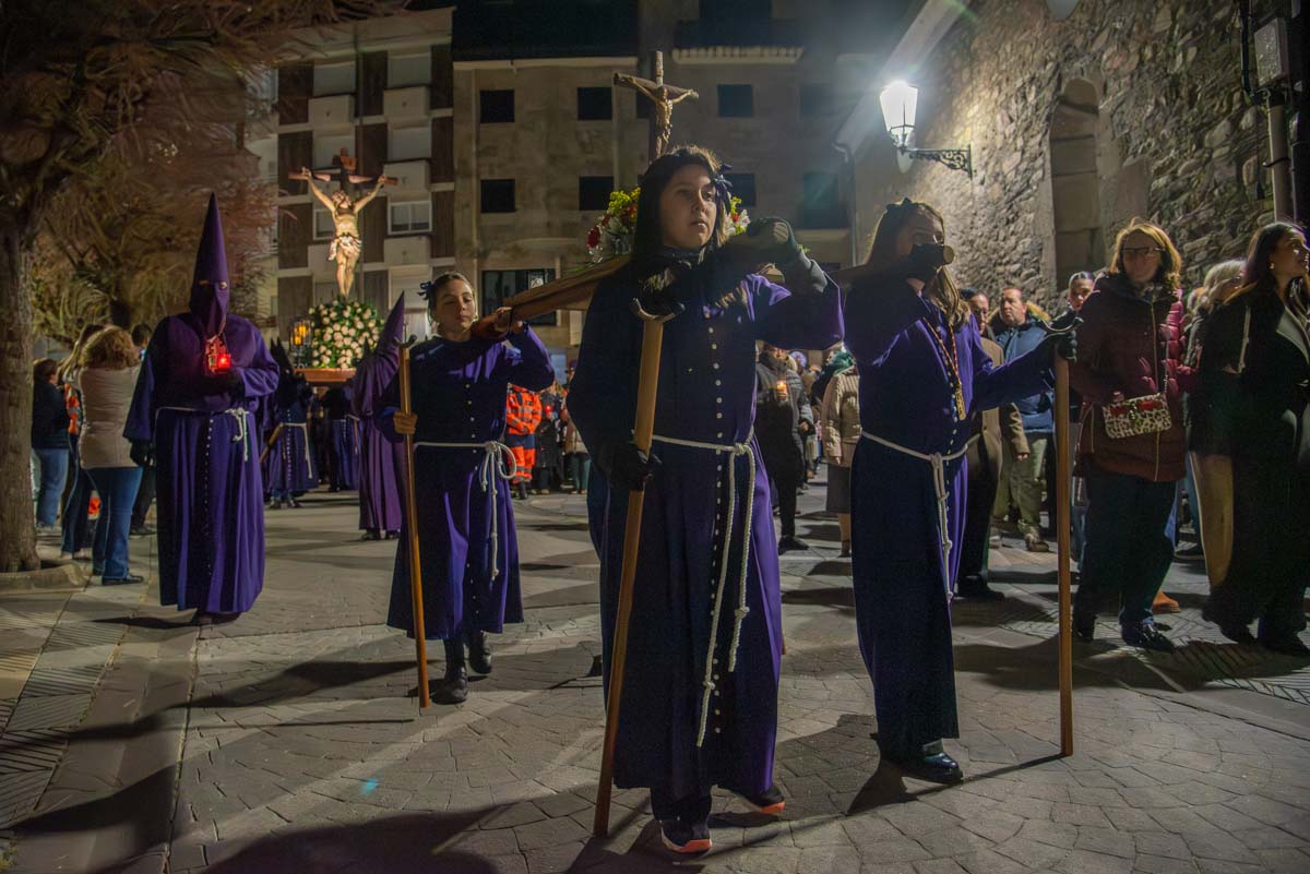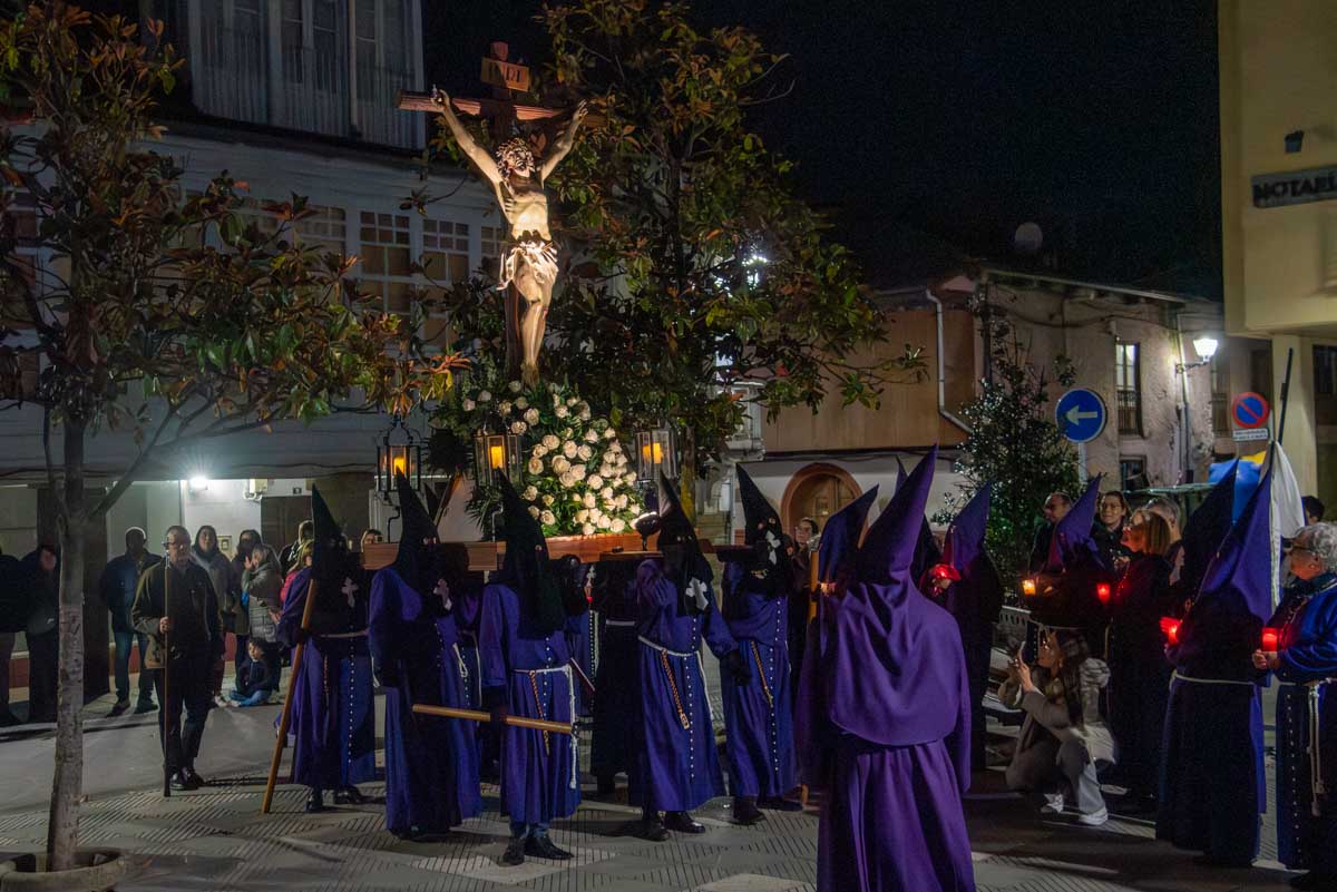 La comitiva partió de la iglesia de San Pedro para recorrer varias de las principales calles del casco urbano, con paso por la avenida del Bierzo, calle Vatemar, Eloy Reigada, calle Castilla y Plaza Mayor, en un itinerario habitual en la Semana Santa de Bembibre. A lo largo del trayecto, el silencio de los asistentes volvió a convertirse en el principal lenguaje de la noche, reforzando el carácter sobrio y meditativo de una procesión que conserva intacta su fuerza simbólica.
